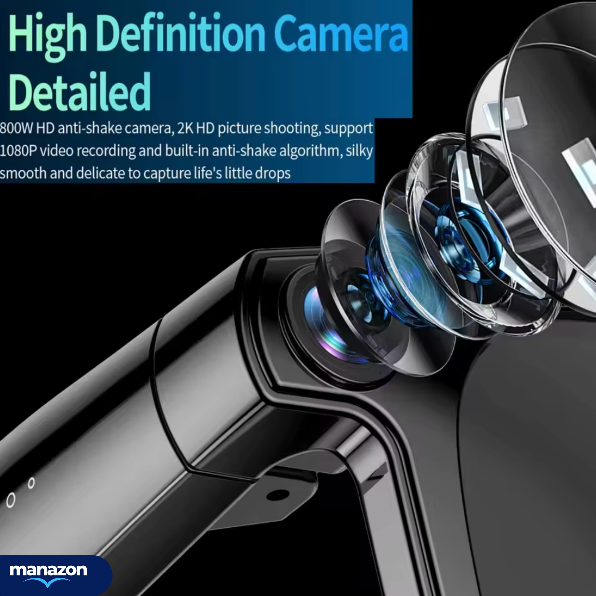 Lunettes connectées avec caméra HD, musique Bluetooth, appels, et assistant vocal IA.
