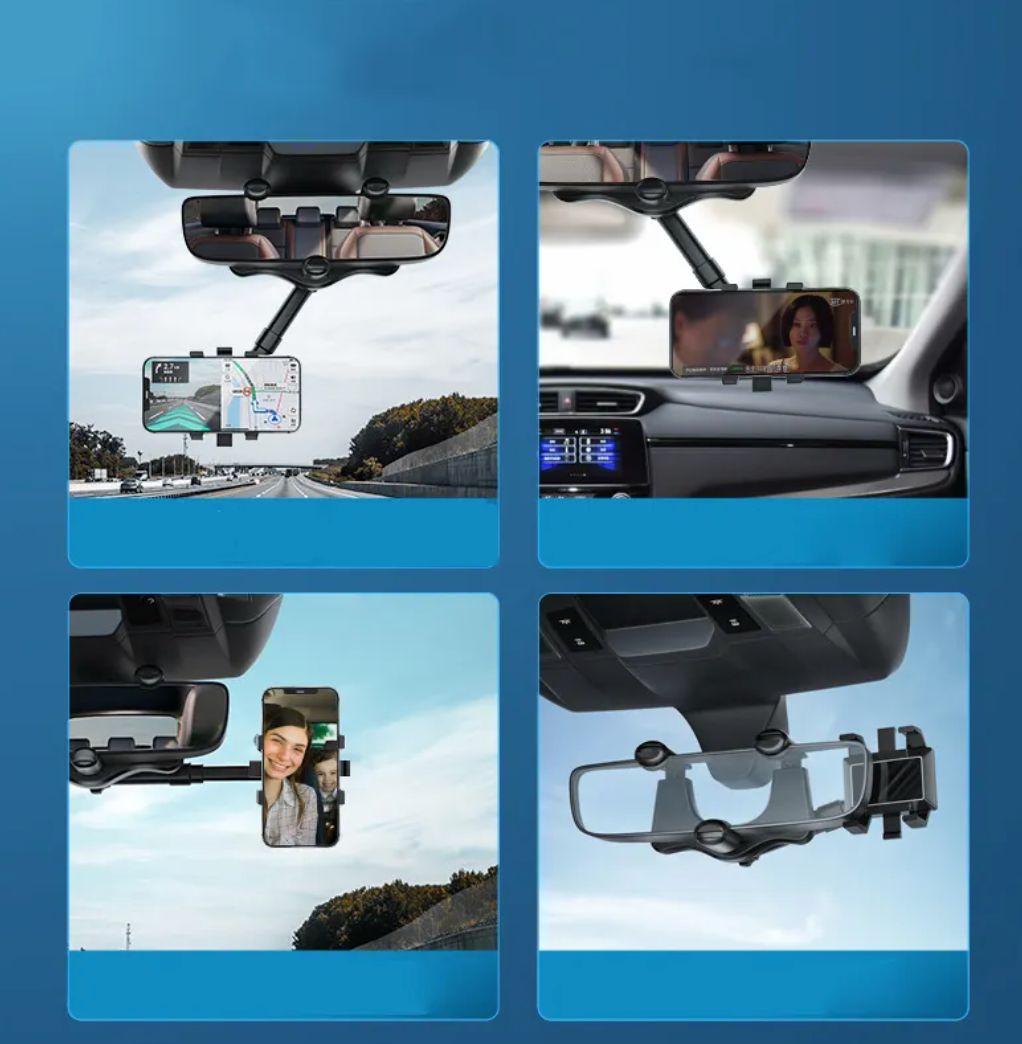 2-Plus besoin de baisser les yeux pour la navigation : Le support de téléphone pour voiture, rotatif et rétractable, est fixé sur le rétroviseur de la voiture et est aligné avec celui-ci pour que vos yeux restent sur la route.